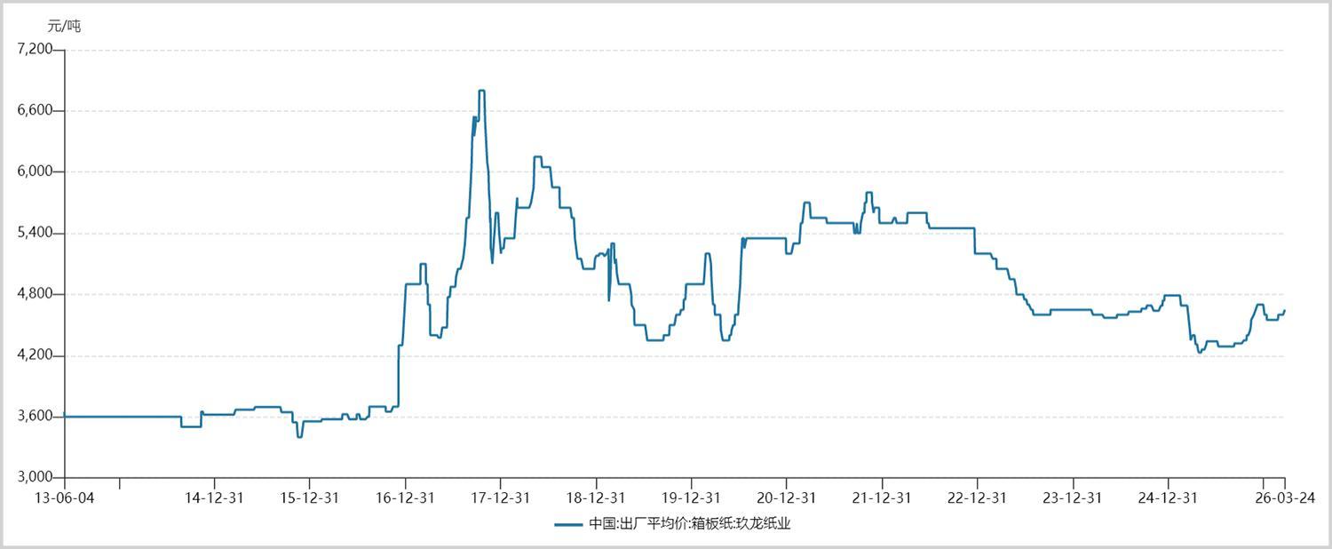 以玖龙纸业的箱板纸为例,2025年4月其价格曾跌至4230元/吨,为近十年最低点,较2017年高峰下跌超过40%。而在“反内卷”措施推行后,如今价格已回升至4650元/吨左右。